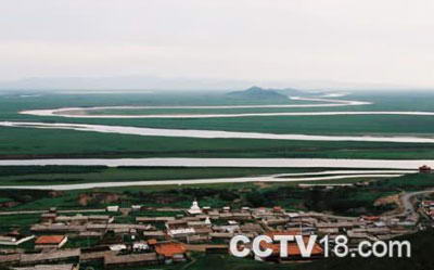 “万涓成水汇大川,千转百回出险滩。滔滔长流济斯民,力发黄河第一湾。”黄河九曲第一湾发源于巴颜喀拉山(海拔4500米)之黄河,流经四川省境内,在若尔盖县唐克乡索克藏寺院旁形成的著名景点。