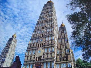 龙兴寺坐落在四川省彭州市城北口,始建于东晋(337年),初名大空寺,梁武帝永定二年(558年)志公禅师扩建寺院,武则天天授二年(619)年更名大云寺,唐玄宗开元六年(718)年诏号龙兴寺。唐武宗会昌五年(845年)预知禅师重建龙兴寺,直到本世纪四十年代寺院占地80多亩,有正殿四重,配殿多座,塑像100余尊,长住僧人100多人,住房150余间,四周红墙环护,寺后假山上下古木参天,古寺高僧辈出,清末缅甸国王赠送玉佛一尊,印度国王送舍利子《贝叶经》,日本国赠送大藏经(此珍贵文物现存市文管所内),古寺以释迦哞尼真身舍利宝塔闻名天下。轻乾隆五十一年(1786年)六月,因遭地震影响,“中部纵裂,形成两峰”。(1922年)历除夕之日午刻,南半部塔塌,阱仅蹲四分之一。历50多年来斜而不倒,被称为“天彭第一奇”。