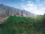 许多万年以后,冰川溶化得所剩无几,雪水也流走,无力再带动被夹带的石灰岩小山时,这些小山便停留下来,一部分座落在彭州市葛仙山,另一较完整的部分座落到什邡八角与彭州交界处的大垭口,其滑行搬运的距离达50多公里。如此浩大的“工程”,除了大自然,还有谁有如此神力