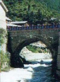 康定是个多桥的城,古有“八桥城”之说。时至今日,折多河上年代久远的当数城南的公主桥。此桥传闻颇多,其中路人皆知的传闻是因文成公主与松赞干布联姻而建。但事实上文成公主进藏是取道青藏路,而人们对康定公主桥的传闻却深信不疑,可见藏汉人民是十分珍惜这一支谊的。康定扼川藏公路咽喉,自古就是藏汉“茶马互市”的必经之路,人民解放军十八军就是雄赳赳气昂昂地跨过公主桥进军西藏的,公主桥是藏汉团结的历史见证。