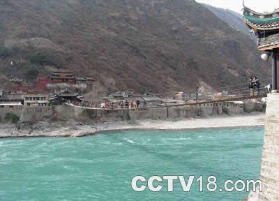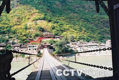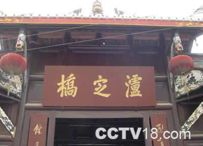 清康熙四十四年(1705年),康熙皇帝因军事需要及藏汉贸易方便下旨修建泸定铁索桥,并御笔亲题桥名“泸定桥”,意为骚乱已平,泸河已经安定。泸定桥结构特殊,造型别致。桥身由十三根碗口粗的铁链组成,其中底链九根,扶手四根。每根铁链由862至977节铁环相扣,均由熟铁锻造,共重21吨左右,桥身净空101.67m,宽2.9m,犹如十三条巨蟒横空出世,令人惊叹不已。桥台全用条石砌就,形如碉堡,下设落井,用生铁铸成的地龙桩与卧龙桩锚固铁链。桥亭为典型的明清建筑,飞檐翘角、古朴大方、造型别致。亭脊游龙走兽栩栩如生、十分壮观。