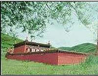 岭·格萨尔王庙就建在吉苏雅给康多的那块酷似青蛙的巨石旁。据有关资料记载,该庙建于清道光年间,是当时的林葱土司为纪念自己的先贤,特地在岭·格萨尔降生的地方修建的,同时还委派当地著名的噶玛噶举派寺庙--岔岔寺的喇嘛管理,所以,格萨尔王庙便成为岔岔寺的一个组成部分,它们之间相距大约为一公里左右。据说当时的格萨尔王庙内除塑有岭·格萨尔跨马征战的威武铜像,岭·格萨尔的爱妃珠牡和大将丹玛、辛巴等的泥塑像外,还有被林葱土司世代所珍藏的岭·格萨尔的象牙朱红印章,征战时期使用的铠甲、兵器,总管工绒查察根的家谱,大将年查阿登使用的宝剑,以及岭·格萨尔岳父使用过的轮珠等文物。