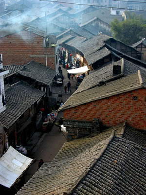 唐武周皇帝万岁通天2年(公元697年)设立岳池县。县治在今顾县镇。唐开元20年,岳池县治迁徙,原治所降为场镇,取名“故县”场。民国初年更名“顾县”,即回顾之意。世易时移,旧县城遗迹已淹灭在历史的烽烟里。仅就现存顾县场镇房屋建筑格局和街道名称看,依稀可见古城风貌。