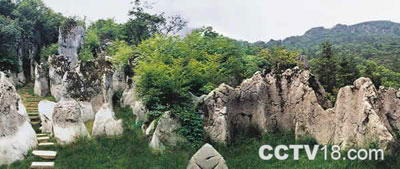 景区以苍翠茂密的森林环境为基调,以华夏独有的大盆景石林为特征,巍峨的华蓥山将秀美的石林隐藏在茫茫丛林之中,绿树缠绕石林,石林呵护秀木,形成了山是石林,石林是山,石林与树交融,与山共生的人间仙境,尽显清、幽、雅、奇的独特魅力。景区内"美妻审夫"、"一吻千年"、"八百罗汉"、"妙笔生花"等景点惟妙惟肖,堪称大自然的杰作。