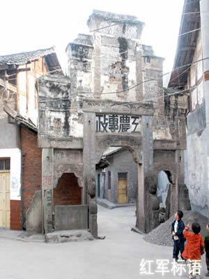 有关专家在旺苍县木门军事会议会址陈列馆进行“红色旅游”资源考察规划时,称该馆收藏的“赤化全球”红军石刻标语,其内容为全国仅有,是中国红军石刻标语之“冠”。