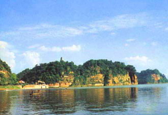 观赏“巨佛”的最佳位置是在乐山城东乐山港码头一带,在此处望南眺望,但见碧水云天之处,巨大的佛体横空出世,安详自如平卧江面,雄姿健影妙趣天成,给人一种美的享受。