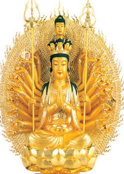 夹江县城西北约十华里,距千佛岩摩崖造像约5华里的青衣江北岸山坡上,即古金像寺遗址。寺后石壁上有6窟造像,造有三世佛、文殊普贤、罗汉观音、地藏金刚、力士飞天等造像,其中尤以“千手千眼观音”造型精美,工艺超群。造像高近5米,有11个头、240只手;观音头顶上有佛像15尊,旁有弟子像4尊,前有力士两尊;观音全身着金,众佛色彩斑澜,因此寺名“金像”。此佛造型结构独特,堪称古代石刻造像之一绝。其他龛窟的造像技艺也极为精湛,保存完整。初步鉴定为明代摩崖造像。