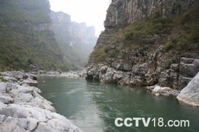 “小三峡”位于蜈蚣岩段,长3.5公里,两岸悬崖绝壁高数百丈,平整光滑,形如刀削,相距不过一、二百米。河中巨石横亘,滩陡浪高,十里长滩弯环曲折,节节相连,环环相扣,如巨形蜈蚣蜿蜒而下,游人到此,有如置身于长江三峡之感。