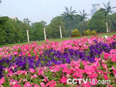 园内绿化面积占总用地面积的90%,主要植物有桂花、紫薇、桃树、梅花等,湖、楼、阁与绿树红花交相辉映,春夏秋冬景色宜人。