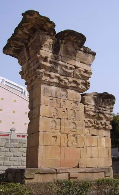 汉平阳府君阙位于市郊芙蓉溪仙人桥西川陕公路东侧(现绵阳市博物馆前),该阙为双头阙,分主阙和附阙,南北相距26.2米,主阙高4.84米,由阙基、阙身、斗拱、阙盖4大部分组成。主阙上支出其檐枋柱头上原有“汉平阳府君叔神道”铭文,现仅存“汉”、“平”等字。附阙形同主阙,仅尺寸略小,主阙阙身刻有墓主生前车马出行图、追猎图、舞乐图等浮雕,附阙浮雕剥蚀损坏严重。梁大通三年(529)佛教信徒凿掉主阙部分阙雕,增刻佛教造像29龛,为省内独存的最古老的石雕,与阙体汉雕同为稀世之珍。其墓主尚不明确,有人认为是蜀汉重臣李福之墓,但证据尚不充分。
