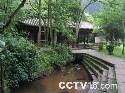 现景区内存有名代石碑,池周茂林清竹,小溪潺潺,群峰滴翠。)优越的自然生态环境,建成了一个占地854M2,集特色餐厅、观景茶楼、美式咖啡馆为一体的新型“时尚农家乐”式休闲度假中心。项目在规划设计中将传统的川西民居建筑风格与现代建筑元素进行了极富创意的整合规划,使乡村度假风情与现代休闲消费环境实现了完整的统一。