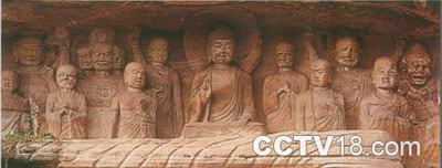 南岩有83个唐代造像龛窟,造像内容大多反映唐代的社会生活。其中34号窟高1.5米,内刻观音、地藏、日光、月光4尊菩萨和立佛等,均高1.5米,属罕见之作。