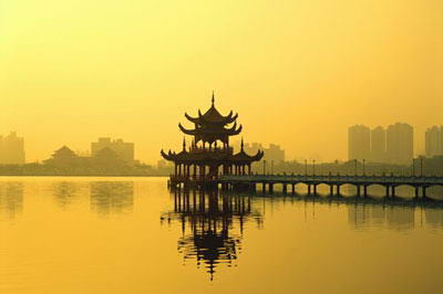 左营莲池潭位于高雄市北郊左营东侧,龟山与半屏山之间,左营莲池潭长1.4公里,左营莲池潭宽400米,左营莲池潭湖面约75公顷。首日潭中遍生莲花,为清代凤山八景中“泮水荷香”所在。如今湖畔遍植垂柳,每逢开花季节,香味四溢;每届晨昏,水雾蒙蒙,潭景若隐若现,颇有几分神秘感。