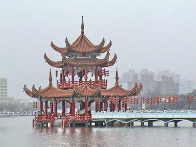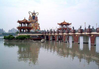 左营莲池潭这里过去是一个蓄水塘,主要灌溉农田,如今已成为高雄市近郊的宗教圣地。在潭的西岸,由北自南分别有孔庙、启明堂、春秋阁、五里亭、龙虎塔、永清塔等;在潭的北岸,还有一座庄严肃穆的孔庙;其余各景,则都密集在潭的西南。长桥、艺阁、宝塔等,形成左营著名的寺庙观光胜地。