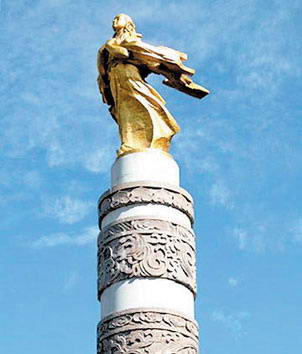 博物馆前广场矗立一通柱式雕像,通柱象征桅杆,外包石材,采用浮雕手法,自下向上雕刻着代表元、明、清三代不同的海洋图案。柱的顶端立一尊妈祖像,为一年轻民间少女,双手轻轻地捧在胸前,双目远望,衣上的锦带随风飘舞,似在期盼远航的人们平安归来,期盼祖国早日统一。