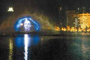 天塔旁的天塔湖内设有世界一流领先科技的大型音乐灯光喷泉组泉、水幕电影,沿湖南岸有国内最长的人工塑山,成为天塔湖游览区的一个亮点。白天,鲜花草木与湖光塔影相应成趣;入夜,波光夜空间,荧塔与星月争辉,难分天上人间。