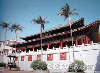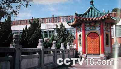 入山门後过停车场,登白石阶梯直达天王殿。进天王殿即见弥勒笑佛,面容祥和欢喜,顿觉心境舒畅,正如坛联曰:“眼前都是有缘人相近相亲怎不满腔欢喜,世间尽多难耐事自作自受何妨大肚包容。”殿内挂有铁制幢旙,风吹声响,古刹庄严。天王殿後乃韦驮殿。过韦驮殿後出庭院,石阶前置大香炉,左右均有水池,旁种参天树木、大红茶花。钟楼、鼓楼分立两旁。