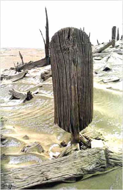 楼兰“5号小河墓地”在整部楼兰探险史中,是最有名的遗址。楼兰人在这里为王族修建了寄托民族之根的陵墓,以一条运河——“小河”作为通向圣地的大道。只要关闭运河龙口,让河床断流,这个墓地就被“封闭”在一个不容外人侵入、打扰的禁地。但至今仍是疑迷难解的神秘之域。