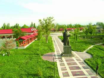 锡伯民俗风情园目前是国家3A 级景区,位于新疆察布查尔锡伯自治县孙扎齐牛录乡境内,距离县城中心约6公里,距伊宁市18公里。是展示锡伯族西迁历史其发展历史和锡伯民俗的综合性民俗风情园。