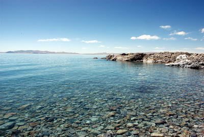班公湖藏语称“错木昂拉仁波”,意为“明媚而狭长的湖”。它东西长155公里,南北窄,最宽处有15公里,最窄处只有40米,水深57米,湖水清澈,蓝得令人心醉。湖上分布着大小岛屿,其中最著名的当数世界海拔最高的鸟岛。湖岸四周有早期文明遗迹。