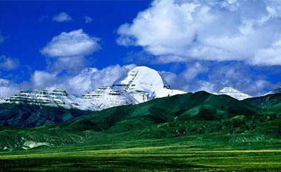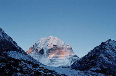 冈底斯山主峰冈仁波齐峰,海拔6638米,梵语称之为“湿婆(印度一种神的名字)的天堂”,藏语意为“神灵之山”,冈仁波齐峰的腰部是较大的淡红色平台,平台边缘被冰雪侵蚀,风化严重,呈犬牙状,平台上有一圈凹进去的沟槽。