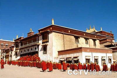 站在达马拉顶上,依山傍水的昌都尽收眼底。杂曲和昂曲之中,强巴林寺巍峨依附在横断山脉之之下,耸立在古冰河切割而成的红壤层上。由于昌都处在疏通川藏门户,商业活动成为这一带人民的主要职业,因而也影响到“神圣”的寺庙上来,故僧人们除了念经诵佛外,还兼营经商生息。昌都寺经商所得利息,平均分给众僧人,采取散发本酥油、糌粑、茶叶等生活必需品的办法支付。年终寺庙进行结算,如有盈利,便在新年时节,不分在小,平均分摊。昌都寺内的壁画、雕塑、建筑、经卷等艺术珍品和文物,与西藏其他地方的寺庙大同小异。当然,作为旧西藏三大领主之一的寺庙,它占有大量土地,也免不了剥削农奴。不然,那些“赤巴”、“堪布”、“活佛”便无法维持奢侈的生活了。别的不讲,就拿吃水果来说,寺庙高僧筑于加惹坝上,吃水得下到数百尺的河里去背。这个寺高有二十二口装水的大铜锅,每口锅得装一百多桶水。每天,二千五百僧人饮用的水,便得靠寺庙周围的百姓来支差背负了。陡峻的河堤,使多少人累死、饿死、失足落水淹死在河里!昌都寺号称“美丽花园”,但是,生活在这花园里的人民,却世世代代免不了爬崎岖的陡坡,下到河里去背水吃。冬天,河中水位低下,上游漂来死畜和垃圾;夏天,山洪爆发,“救苦救难”的菩萨并没能给众生带来甘泉,倒是解放后,党和人民政府在昌都寺旁建立自来水站,才解决了昌都僧俗人民吃水难的大问题。