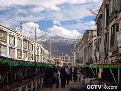 八廓街充分展示了拉萨古城的原有风貌。由手工打磨的石块铺成的街道,虽不很宽,却是拉萨每天客流量最大的地方。这里店铺林立,流动的货摊超过千家(除了本地的老户以外,还有一些定居拉萨十多代的穆斯林和尼泊尔侨民),临街的房子几乎都是商店,经营大小各异的转经筒、藏袍、藏刀、生动拙朴的宗教器具等各式日用品,还有从印度和尼泊尔远道而来的各种商品。各种民族的旅行商品集中在周长汉1000多米的八廓街,可谓物美价廉。