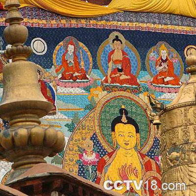 色拉寺内藏有极为丰富珍贵的文物,其中有不少属于国家级重要文物,其中有不少属于国家级重要文物,主要包括各种胎质的佛像、唐卡、壁画、佛经、法器和供器。措钦大殿内观音殿中供奉的金汁书写的《甘珠尔》和《丹珠尔》大藏经、文殊殿中供奉的1413年北京版《甘珠尔》大藏经、罗汉殿中供奉的永乐皇帝赐予的十八罗汉檀香木像、吉扎仓内供奉的“大明宣德五年内加金银造”铜钹和现藏于西藏自治区文物管理委员会中的大慈法王释迦也失真容缂丝唐卡等都是寺藏文物中的精品。其中永乐皇帝赐予释迦也失、1410年用朱砂刊印的108函北京版藏文《甘珠尔》(现有105函)最为珍贵,它不仅制作精美,而且是第一部用雕版印刷术印制的藏文大藏经,对研究我国版本学和印刷史都具有重要的价值。
