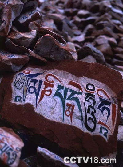 六字真言原意为“如意宝和莲花”。喇嘛教将此言为一切经典根源,循环往复念诵即可消灾积德。在西藏,刻有六字真言的石头随处可见。