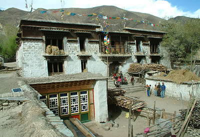 雅鲁藏布江南岸台地上,茂密的核桃林,蓬大的冠盖,绿中泛黄的青稞麦掩映着一个名叫冲溪的小山村,十三世达赖喇嘛出生在这个小村庄里,村庄过去名叫“朗敦”,意译为“象山脚下”,因为那村庄前靠着的一座小山很像大象的鼻子。自十三世达赖诞生后,村庄更名为“冲溪”,意为诞生庄园。灵童出生的房子,命名为“冲康”,即诞生的房子。村民们每日来此上香,这成了他们最主要的宗教活动。庄园林卡古木参天、春华秋实,保留着十三世达赖喇嘛亲手种植的苹果、梨、桃、杨树、松树。