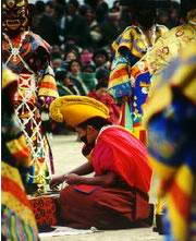 措钦是用80根木柱支撑的一个巨大的黑色帐篷,可以同时容纳200名僧人诵经。拉康帐篷里外是布质,中间夹毡,再以木棍支架支成的圆顶帐篷,类似蒙古包。
