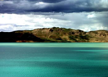在安多,夏季的错那湖,湖内绿水清漪,鱼儿跳跃;湖边青丘着意,远眺,卓格神峰隐隐作态,山水相映。错那湖是怒江的源头湖,海拔4800米,面积约300平方公里,是世界海拔最高的淡水湖,唐古拉山山脉南部河溪均汇入措那湖流入怒江
