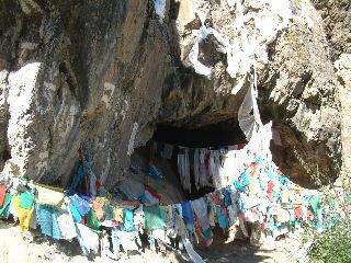 猴子洞位于贡布日山腰,是自然形成的岩洞,洞高2.5米,进深5.25米,洞内东南石壁上有一彩绘壁画,内容是泰然自若的猕猴手捧“曼扎”坦然坐在牡丹花上,相传“猴子变人”的故事就发生在这里。