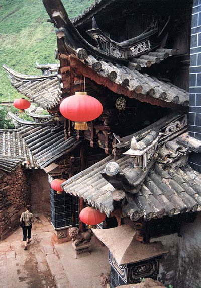 古巷幽幽,木刻花窗,雕梁画栋上附着的蛛网尘丝,青石板路上的深深蹄印,无不在诉说着它的历史与曾经的辉煌……与丽江古城的小桥、流水不同,黑井古镇则多了几分古之悠悠,情之绵。龙川江穿城而过,红砂石铺就的汉代马帮道与城中宽不过三尺的街巷相依相偎。月朗人寂的晚上,红砂石砌成的石碑坊漠然矗立,五马桥边的万家灯火,叙说着一个遥远深邃的繁华世界。绵绵秋雨中,伍家大院风化的石柱脚、黑井文庙中斑驳的石墙都在诉说着一种破而不衰的风骨。