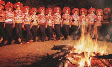 彝族虎图腾的典型表现是“老虎笙”,它是流行于楚雄双柏小麦冲地区的一种原始的祭祀舞蹈,表现彝族的生产,生活和繁衍后代的场面。每年正月初八到正月十五这段日子,双柏小麦冲地区的彝族都要由成年的男子装扮成虎态,用红,黑,黄,白等色将脸画成虎面,手脚画上虎纹,再穿上用羊皮黑毯制成的虎衣进行表演,很象汉族的“狮子舞”,表现彝族生活幸福,欢乐喜悦的心情。“老虎笙”的高潮是带有浓厚神秘色彩的“虎神驱邪”,表现为一只只老虎驮着神灵走村串寨为各家各户驱鬼逐疫。整套舞蹈古朴而神秘,使你仿佛置身于彝族的远古时代。“老虎笙”浓缩了彝族罗罗人生产生活的内容,是彝族虎图腾的典型表现。