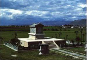 杜文秀墓位于大理市七里桥乡下兑村。建于1917年,为杜文秀女婿张志勋所建,侧面为长方形,正面近正方形,南北向,长约1.7米、宽约0.7米,墓碑高约0.4米,宽约0.3米,墓顶为石雕屋顶式墓盖,两侧为大理麻布石制。1956年,大理县人民政府重修杜文秀墓,改立墓碑,正中直书“杜文秀之墓”5个大字,旁有两行小字:“原命生于道光癸未年十月初八日;大限卒于同治壬申年十一月廿六日。”由此可知,杜文秀生于公元1823年,卒于1872年,牺牲时年仅49岁。1984年~1985年重修时,将原墓罩在方10米、高1.5米的麻布石墓内,其上再以青石砌成呈伊斯兰式歇三顶墓体,全墓高5.7米。墓碑书“总统兵马大元帅杜文秀墓”,墓尾为阿拉伯文碑,墓前立白寿彝先生序文及重修碑记。南、东、西三面为正门及围墙,占地面积1400平方米。杜文秀1983年1月被云南省人民政府公布为第二批省级重点文物保护单位。