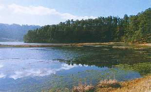 洱海源头镶嵌在洱源北三公里的坝子中,是一个不大的高原淡水湖,面积1.2万亩,却有一个非常美丽的名字——“茈碧湖”。茈碧湖三面环山,一扇洞开,呈菱形状,地虽不广,天格外蓝,山虽不高,亦多情态,湖自纤巧,亦显波澜。这里群山环抱,溪河交错,田园如织,村落相间。气候冬暖夏凉,宜人无比。湖周冬来红梅吐艳,夏日绿柳婆娑,常年竹木葱郁,群芳争妍,碧草如茵。湖水绿波漪澜,鱼跃水冒,海鸟群集,山色倒映。湖中生有世界珍稀名贵花卉茈碧花,成簇成片,洁白无瑕,清香四溢。据称,世界上只有日本、北京颐和园与茈碧湖有此名花。水花树是茈碧湖又一奇景,那一簇簇、一串串透明晶亮从水底不断往上涌出的水珠,形成一株株挂满珍珠的宝树,璀璨剔透,银光耀眼,如虹霓,若彩云,变幻莫测,绚丽多姿,五彩夺目,令人目不暇接,堪称茈碧湖一绝。