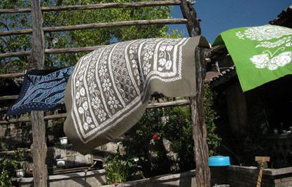 昔日周城白族先辈们赶马驮货走夷方、下海捕鱼都成了老人摆古的话题,但周城的白族经商和从事手工艺品加工的古老传统习惯一直沿袭着。已有300余年历史的扎染手工艺在新时期大放异彩。扎染又称绞缬染,俗称扎花布,是将白布按绘制好的图案用线缝扎起来,染以天然的植物染料,经漂洗拆线后即呈图案,美丽古朴。今日的周城扎染产品已有250余种,远销到欧美和东南亚各国,每年为国家创汇200多万美元。在周城,从10多岁的小女孩到年逾花甲的老奶奶人人都会扎布。周城被文化部命名为“白族扎染艺术之乡”。另外,周城的传统白族手工刺绣产品也深受国内外游客的青眯,产品远销世界各国。还有许多周城白族群众在从事餐饮业,“酸辣鱼”成为周城白族餐馆款待佳宾的拿手好菜。