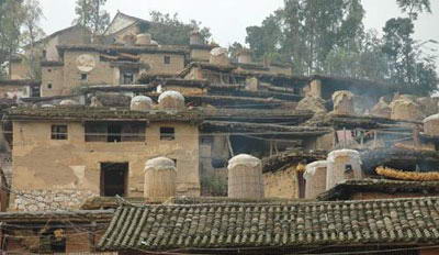 这个村之所以受到关注,首先是因为这个村历史悠久,具有300多年的历史;其次因为这个村是"城",这些土库房在云南省哀牢山区被称为"土掌房",但这里的土库房与其他地方的土掌房相比,最大的不同点在于集中连片、依山而建、户户可通、家家相连。不少人家的屋顶就是上面一户人家的平台和晾晒谷物的场院。村中大多为三间两耳下八户土平房,无论是一层或两层,院落中间都留出一个5至6平方米的天窗,一是为通风透光,二是为上房顶行走方便,天井中立一架木梯,上房顶即可到其他人家。由于上下有木梯相通,户户有平台相连,只要进入一家,就可从平台进入另一户人家,直至走通全村人家,因而整个村子曲径通达,宛若迷宫;再次是这个村子民风纯朴,人心善良,凡见生人,村民都主动热情招呼,盛情邀请到自己家吃饭。