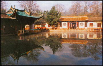 黑龙潭位于昆明市北郊龙泉山五老峰脚下。《汉书·地理志》记载,益州郡滇池县西北有黑水祠。清代云贵总督阮元考证云:“滇池县有黑水祠,盖此地也,或者唐梅宋柏之间为故址,龙神庙乃下迁者”。也就是说汉代的黑水祠就是现在的黑龙潭道观,它是云南第一处名胜古迹。因为传说云南龙王黑龙的龙宫就在此,这里的潭水又终年不会枯竭,故后称“黑龙潭”。唐宋以来,昆明地区的老百姓就到黑龙潭祭祀求雨。明初,黔国公沐氏在此大兴土木,将龙神祠改名为黑龙宫,整个龙泉观初具规模。此后,明清两代,云南督抚多次对龙泉观进行修葺,规制不断完善。民国年间,这里称龙泉公园。