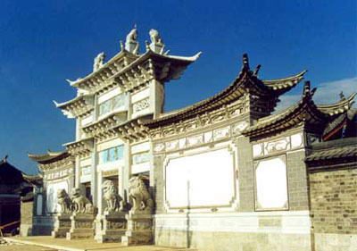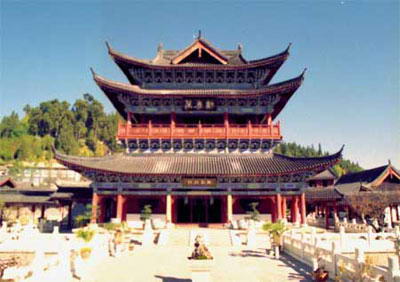 “北有故宫,南有木府”跨过清泉汨汨的流水小桥,突见一座木牌坊赫然立于土木瓦顶居民之间。跨进朱红色的木府大门,眼前豁然开朗,一片开阔的地面上巍然耸立一座金碧辉煌的宫殿,汉白玉基座雕刻精美,那恢宏的气势,使人恍若置身于皇宫之内。纳西人说起“木老爷”来,就跟我们提到自己的老祖宗一样亲切。木老爷,从前就是这座浩大宅第的主人。简单一点说,五六百年前的木府,就是纳西民族的“紫禁城”。