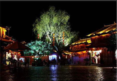 四方街是丽江古城心脏,交通四通八达,周围小巷通幽,据说是明代木氏土司按其印玺形状而建。这里是茶马古道上最重要的枢纽站。明清以来各方商贾云集,各民族文化在这里交汇生息,是丽江经济文化交流的中心。这里是历代集市中心,每日万头躜动,热闹非常。从四方街四角延伸出四大主街,直通东南西北四郊,又从主街岔出众多街巷,如蛛网交错,往来畅通。街道全用五彩石铺砌,平坦洁净,晴不扬尘,雨不积水。几乎每条街道一侧都伴有潺潺流水。由此形成以四方街为中心,四周店铺客栈环绕,沿街逐层外延的稠密而又开放的格局,古老的集市就这样孕育了城市最初的形状,这与中国传统的四四方方的井字形街道是不是一样的。