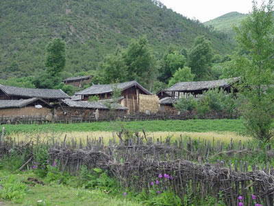 那次我们下榻在上村的“生态旅馆”(美国大自然保护协会牵头、日本一机构资助而修建的一个旅馆,作为扶贫项目该旅馆建成后交给了村民来管理和创收),在旅馆旁的纳西人家用晚餐。第二天,我和披特继续前行,经过雪花村、彝族村,翻山跨谷,在下午抵达了金沙江边的龙蟠乡。完成了两天的文海徒步穿越。