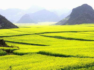 罗平独特的气候,造就了罗平独特的生态农业。每年2至3月,连片的20万亩油菜花在罗平坝子竞相怒放、流金溢彩,绵延数十里,好似金浪滔滔的海洋,凡驻足这个最大的天然花园,无不感叹罗平是“金玉满堂之乡”。324国道、南昆铁路从花海中横贯而过,有“中国吉普赛人”之称的养蜂人,聚在花海之中,放蜂追花采蜜。