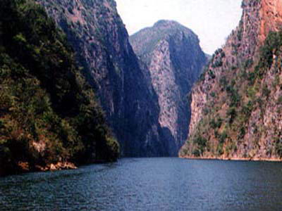 乘舟漫游其间,山峡景观使人陶醉,近20公里长的峡湖,水质纯洁晶莹,河流两岸雄、险、奇、秀的景观绘织成一幅美丽的山水画:雄的地方,众山环抱,气势非凡;险的地方,峭壁千仞,异景纷呈;奇的地方,飞龙瀑从天而降,似天龙吐瀑;秀的地方,绿水碧波,青山重重。