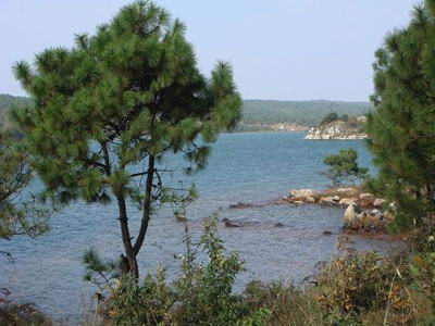 游花山湖最好的方式自然是乘游艇直进湖心了,迎着和煦的阳光,踏着波光刻猕的浪花,让游艇沿着长约四公里,宽一公多里的湖面缓缓行进,你会走进一个美妙无比的世界,湖面忽宽忽窄,忽蓝忽白。一会儿你就可以看见一片怪石林立的水中风景,那是湖中被游人称作小石林的小岛。这片小石林名符其实,一个个石头像一棵棵粗壮的大树一样立在那里,密密匝匝,彼此相依相偎,组成一片丛林。