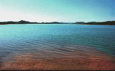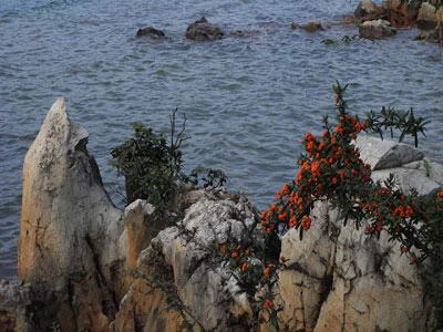 这丛林又生得千姿百态,仔细看去,又像一群山间的野物,有的像狮,有的像鹿,有的像马,有的像羊,还有的像开在水中的莲花,像长在岩上的果,让人美不胜收。走过小石林,又是凤凰山,原是两座相连的小山,一旦湖水升起,两座小山便成了两个互不相连的湖中小岛,就像两只戏水的凤凰。