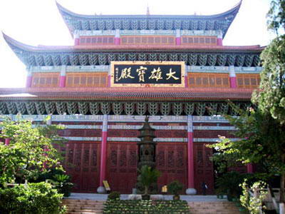 历史上的玉泉寺是滇中地区有名的佛教寺院。大雄宝殿内建有东南亚最大的高28米的室内木雕坐佛佛像,佛像全部用珍贵的檀香木雕刻而成,两侧天尊分列,造型怪异,栩栩如生,令人肃然起敬。漫步其间,福音袅绕,奇香四溢,让人心旷神怡,烦劳忧思尽抛脑后。