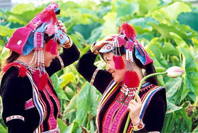 玉泉湖上巧妙地设置了多个小岛,每个小岛自成一景,以三座月牙形木桥相连。每座小桥风格各不相同,亭亭玉立,倒映湖面,又添一景,可见设计者独具匠心。其中的“结缘桥”桥头处有一对联“夹岸晓烟春满园,人杰地灵桥结缘”,据说每日“月上柳梢头,人约黄昏后”,小桥成了情侣们约会的地方。每个小岛上的景致各不相同,与花木草坪相间分布的一座座别致的小木屋,大都临水而建,造型轻盈活泼,体现了纯自然的风格,木屋所营造出的童话更为恋人们所喜爱。