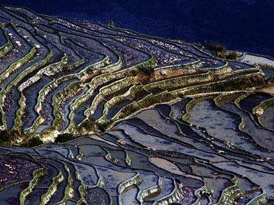 元江梯田主要集中在羊街、那诺两地,其中以那诺梯田为最。那诺梯田反映了哈尼族历史悠久的农耕文化,那诺梯田每一个季节都很美:夏日梯田绿油油、生机盎然;秋日稻谷成熟,一派黄澄澄、铺天盖地的丰收景象;而到了冬天,梯田云雾缭绕、变幻莫测。